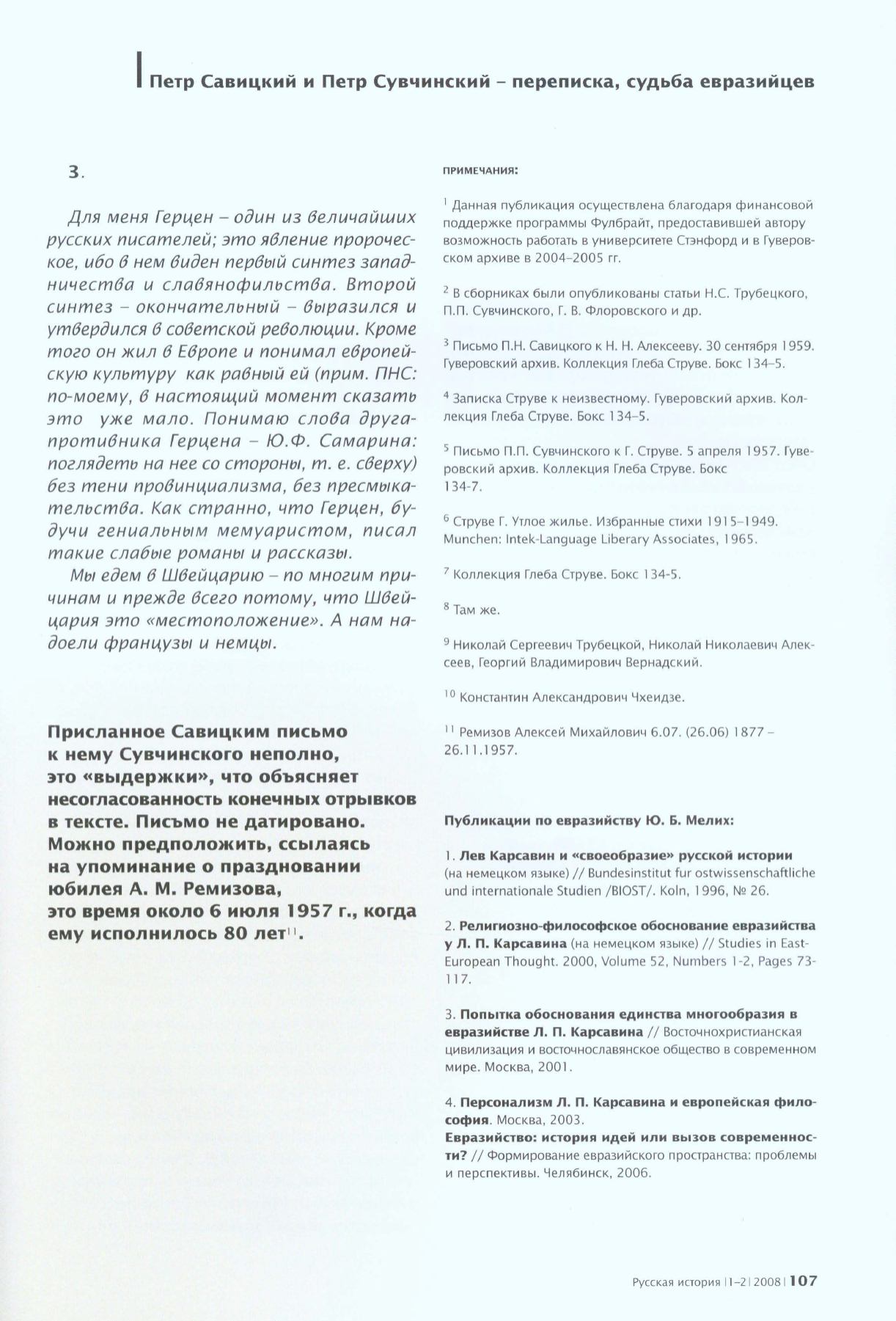 Петр Савицкий и Петр Сувчинский- переписка, судьба евразийцев