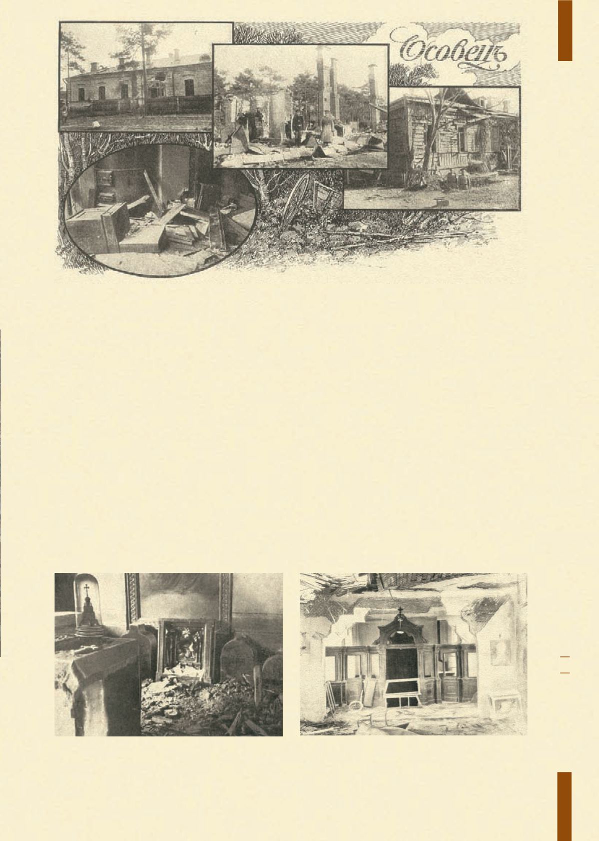 алтарь осовецкого крепостного собора Покрова Пресвятой Богородицы и церковь лазарета в осовце после обстрела.