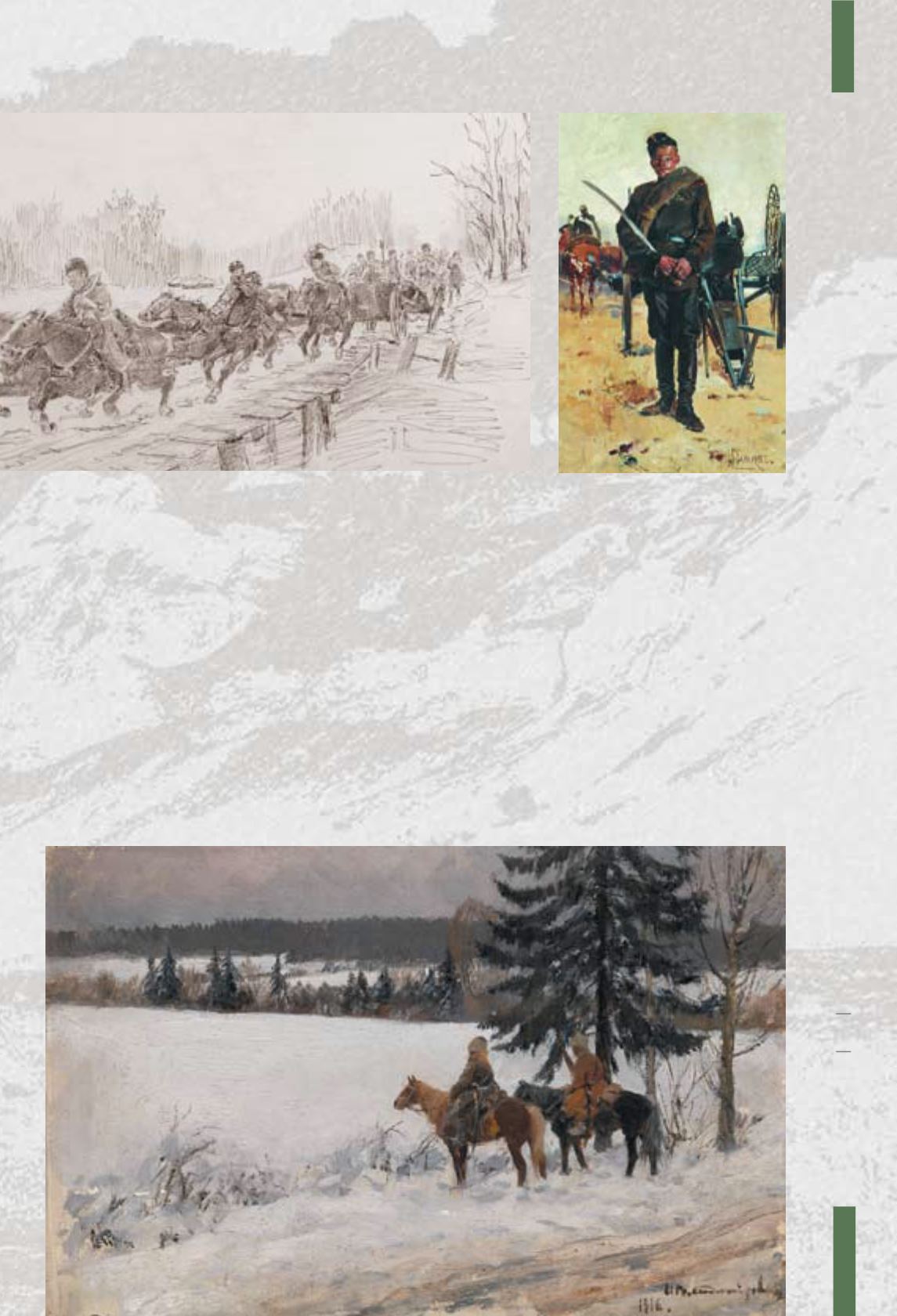 Зимняя сцена с двумя всадниками-казаками.