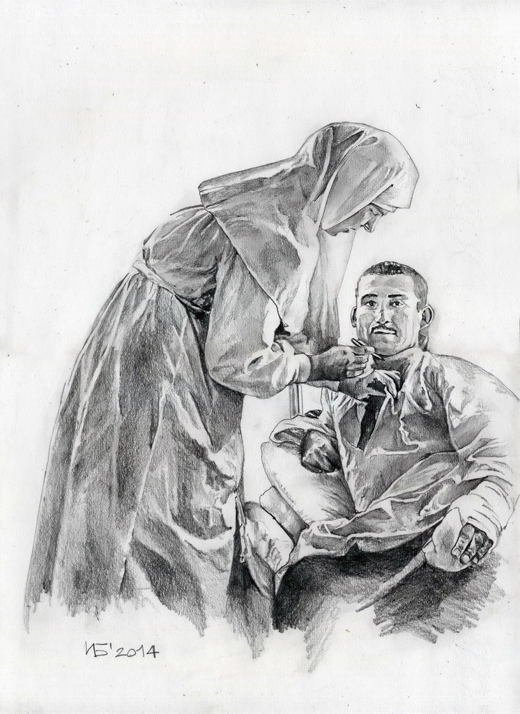 Сестра милосердия. Возле раненого. Иван БыковСтуденты Ивановского художественного училища создали по заявленной теме серию замечательных работ. Кроме живописи и графики, в экспозиции показаны эскизы футболок, значков, марок, монет, сделанные в технике компьютерной графики.