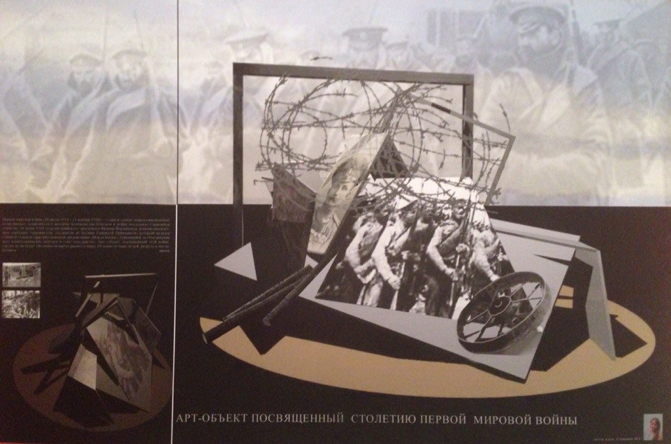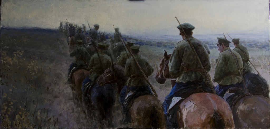 Казак. Елена СаврулинаГрафический рисунок того сложного военного периода с присущим профессионализмом передан в эскизах Ивана Быкова. Созданная Анастасией Пилюгиной в технике линогравюры композиция по мотивам произведения Ф. Степуна «Из писем прапорщика-артиллериста» привлечёт внимание посетителей выставки. В коллажах на тему Первой мировой войны, выполненных Марией Сошкиной и Дарьей Червяковой, прослеживается многозначительный мастерски воплощённый замысел. Плакаты на тему «Забытой войны» удивляют своей оригинальностью. Каждый из авторов старался максимально правдоподобно передать страницы той эпохи. Это Николай Вяткин, Александра Васильева, Екатерина Еричева, Любовь Панина.