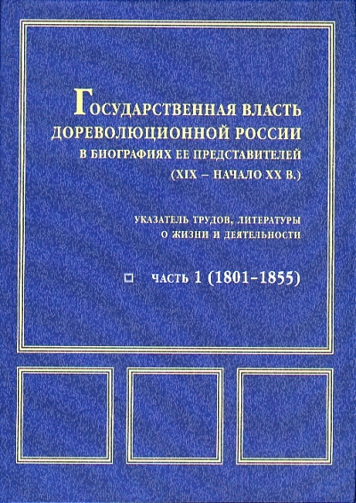 Государственная власть дореволюционной России в биографиях ее представителей (XIX – начало XX в.): указ. трудов, лит. о жизни и деятельности.