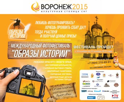 С 10 августа 2015 года стартовало одно из крупных мероприятий программы «Воронеж – культурная столица СНГ» - международный фотофестиваль «Образы истории», организованный ВРКПОО «Наша история».