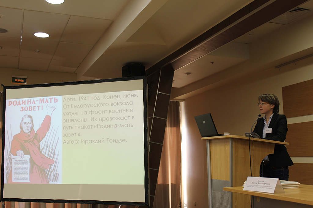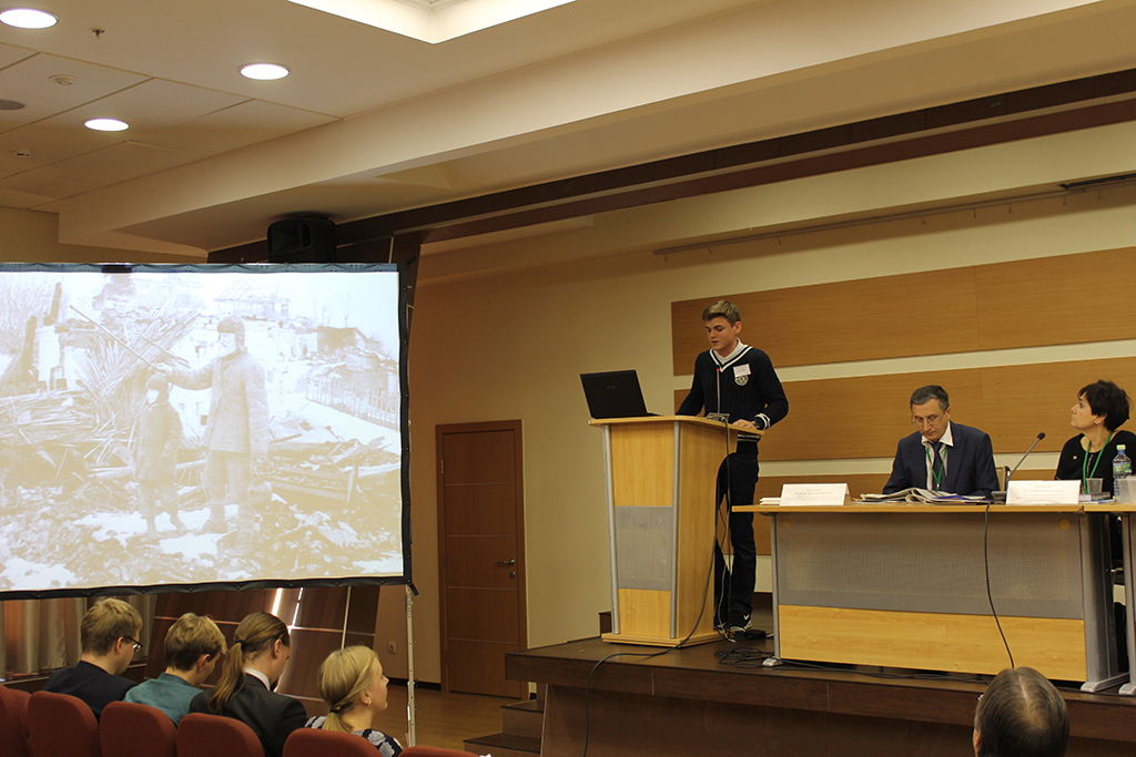 Участники конференции не обошли стороной и столь важное событие в отечественной истории как Великая Отечественная война советского народа 1941-1945 годов, 70-летие окончания которой мы чтим в этом году. Этой священной теме были посвящены увлекательные доклады «Курская битва» Дениса Алексеевича Егорова, студента Технологического колледжа № 34, г. Москва; «Роль и значение советских агитационных плакатов в период Великой Отечественной войны» Светланы Владимировны Ежовой, преподавателя Технологического колледжа № 34, г. Москва; «Суровые, но радостные дни...» (из истории создания документального фильма «Разгром немецких войск под Москвой» 1941-1942 годов») студента МГУ имени М. В. Ломоносова Анатолия Андреевича Волохова.