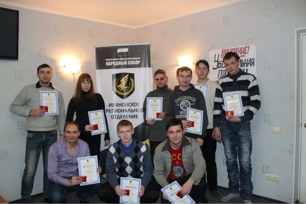 В штабе Ивановского регионального отделения общественного движения «Народный Собор» 16 декабря прошла церемония вручения дипломов и удостоверений Императорского Русского исторического общества членам местного отделения.