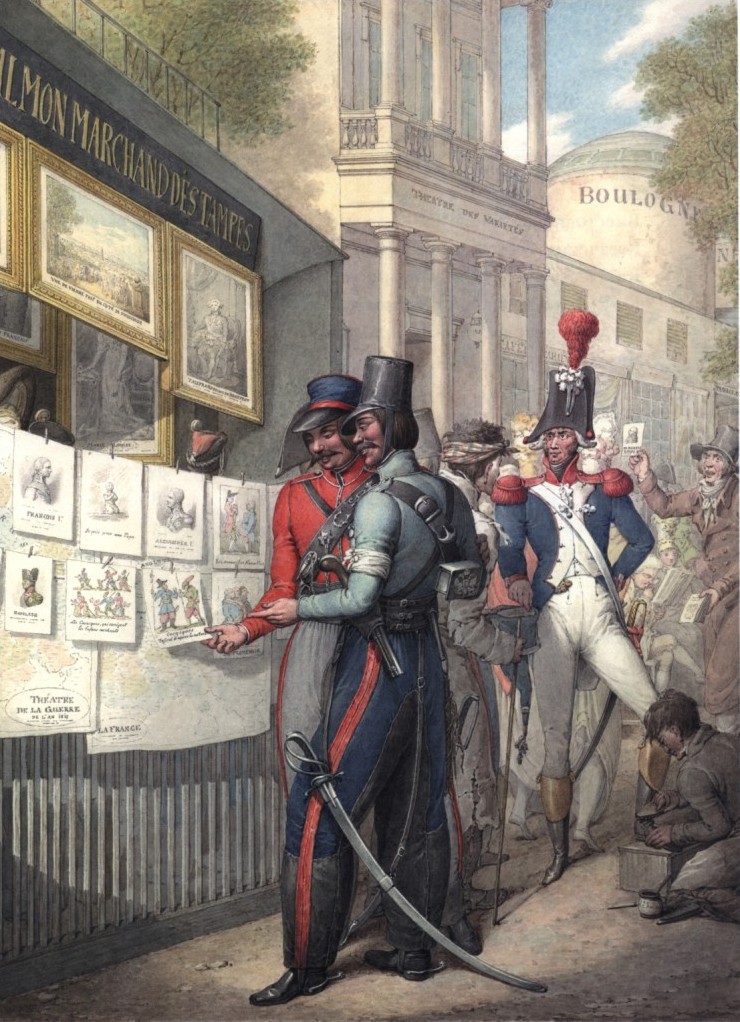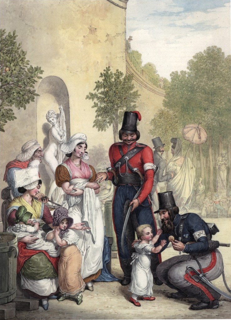 В Саду «Эрмитаж» экспонируются репродукции из акварельной серии художника Георга Эммануэля Опица «Русские казаки в Париже в 1814 году» из собрания Государственного исторического музея.