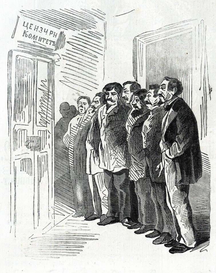 ![Цензурный комитет. Редакторы журналов отстаивают свои статьи.[br] Карикатура из журнала «Искра», 1862 год Цензурный комитет. Редакторы журналов отстаивают свои статьи.[br] Карикатура из журнала «Искра», 1862 год](/images/news/2014/Cenzura.jpg)